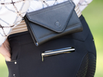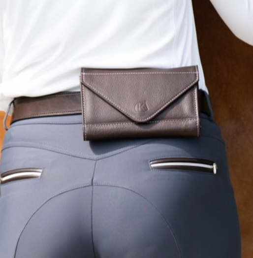 Designed for busy equestrians, the KL Select Phone Pockets are the perfect combination of fashion and function. A great place to keep your phone while riding or on the go, the stylish Phone Pockets are made in a supple pebbled leather. Features include 2 inside billfold pockets, magnetic snap closure, belt loops, easy access for a phone charger or headphones, and KL logo embossing detail. Fits on any belt up to 2.5″ wide.